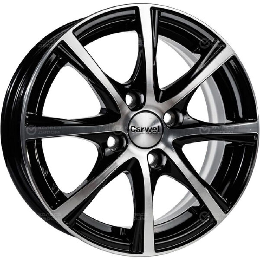 Колесный диск Carwel Легран 5.5xR14 4x100 ET42 DIA56.6 чёрный глянцевый с полированной лицевой поверхностью